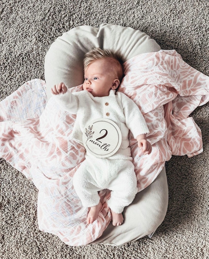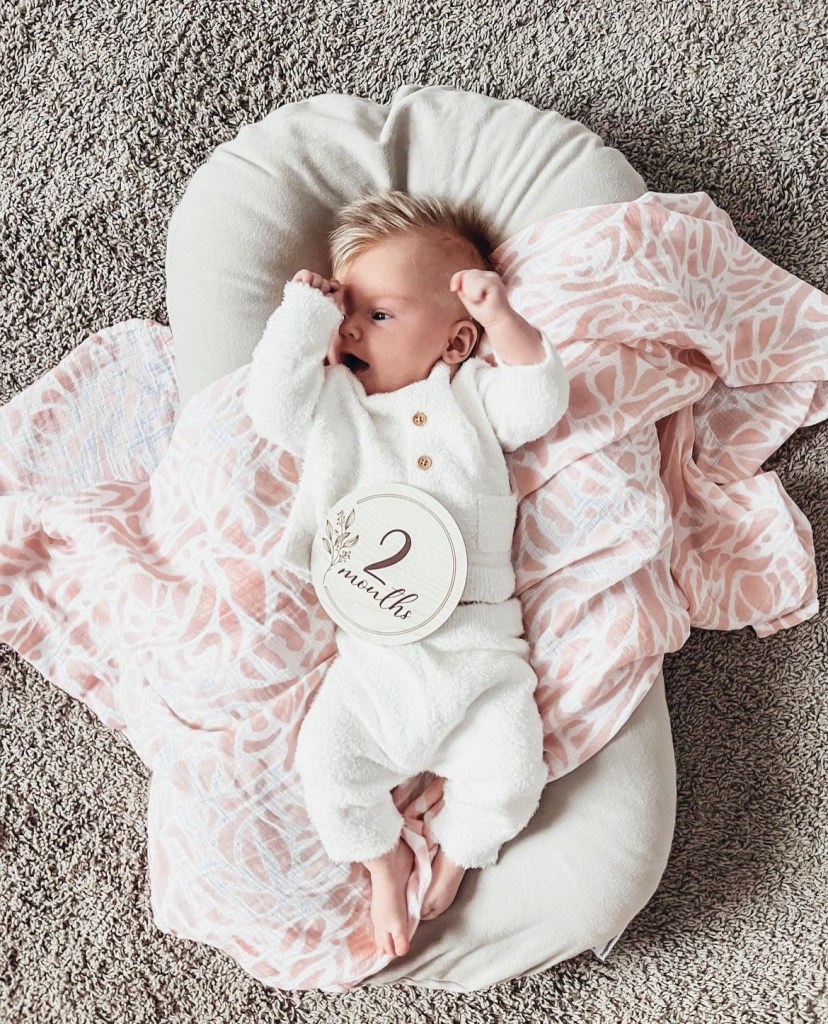 Outside is her favorite place to be ☀️🐞 Lets her mom and dad sleep anywhere from 4 to 7 hours at night 😴 Loves to look at herself in the mirror 👸🏼 Spa (bath) night tickles her fancy 🛁 Adores looking at her daddy 😍 Enjoys playing under her pink animal gym 🤸🏼♀️ Will yell at you for making her do tummy time, but she’s so good at it 💪🏼 Favors Bluey 🐾